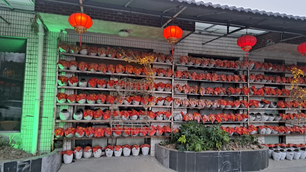 Nach dem erfolgreichen Workshop sind wir in ein Restaurant auf dem Land gefahren. Hier wird Yellow Wine produziert und zu im Ganzen zubereiteten Lamm serviert. Köstlich – aber der süße Wein, dessen Geschmack mit Port oder Sherry vergleichbar ist, hatte es in sich…