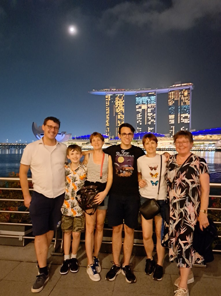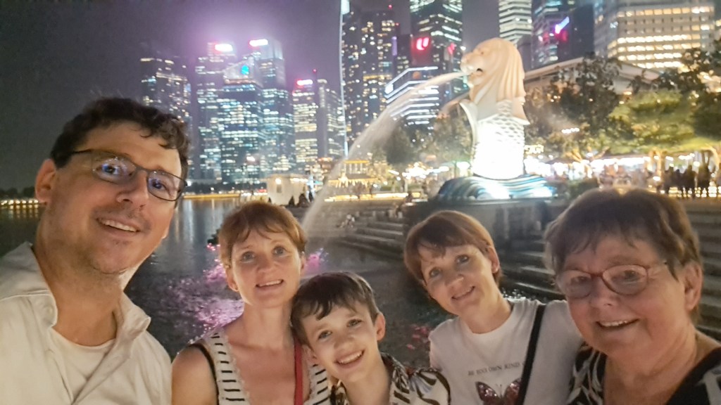 Nach einem guten Abendessen bei Brewerkz am Riverside Point haben wir einen Spaziergang zum Merlion gemacht. Tolle Abendstimmung und eine nette Koreanerin, die das Gruppenbild vor dem Marina Bay Sands gemacht hat.